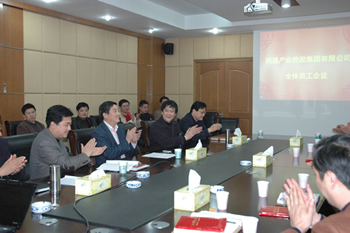二月十三日下午,產控集團本部召開員工大會,對上年度先進工作者以及被上級機關表揚、表彰的部門和個人進行表彰。陳照東董事長給受表彰的部門和個人一一頒獎。 陳董事長指出,產控集團在過去一年取得了很好的成績,是所有部門和全體員工共同努力的結果。2009年宏觀經濟環境復雜多變,困難大,任務重,董事長要求全體員工做到“三講、三抓”: “講學習”——認真學習掌握國家有關宏觀調控的方針政策、法律法規和經營管理知識,提高抗風險能力;“講團結”——顧全大局,擺正位置,加強班子團結,加強員工團結,把發展事業推上新的臺階;“講效率”——在科學決策基礎上,通過良好的工作方法,把事辦好、辦圓滿,達到預期效果。 “抓發展”——追求效益最大化,進一步做好服務、協調、監管工作,幫助骨干企業做優做大做強,搞好分工協作,盤活閑置資產;“抓重點”——著重做好防下滑、保增長,抓轉機、促發展,拓領域、調結構,強基礎、添后勁,提速度、增效益方面的工作;“抓落實”——各項年度工作目標要分解落實到責任部門、責任人,特別是項目發展工作,要通過“項目推進年”活動,有效組織起來,取得事半功倍的效果。 陳金明總經理主持會議。