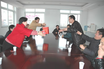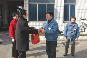 2007年春節剛過,公司領導班子深入各投資企業開展慰問活動。正要出發,市經貿委主任蔡惠中一行上門慰問
