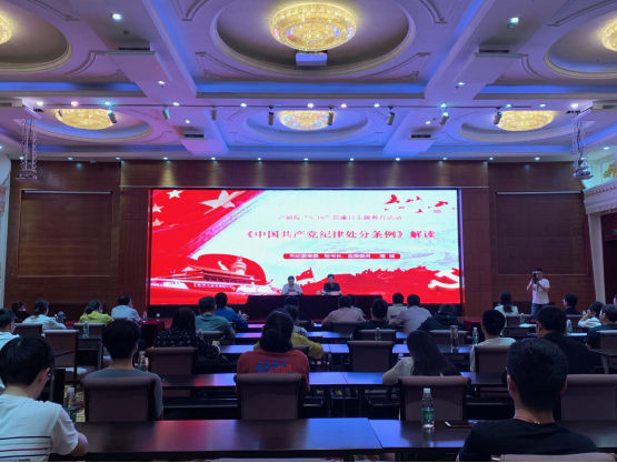 為全面貫徹習近平新時代中國特色社會主義思想和黨的十九大精神,對全面從嚴治黨、加強紀律建設作出再部署,充分發揮黨紀法規標本兼治利器作用,切實加強以黨員干部為重點的全社會廉潔教育,5月27日下午,市紀委常委、秘書長、監委委員周斌以“守紀律 講規矩”為主題,深入解讀《中國共產黨紀律處分條例》,上了一堂生動的專題講座。南通產業技術研究院及下屬公司全體人員、陸洪社區黨員代表、園區入駐企業黨員干部等參加了活動。