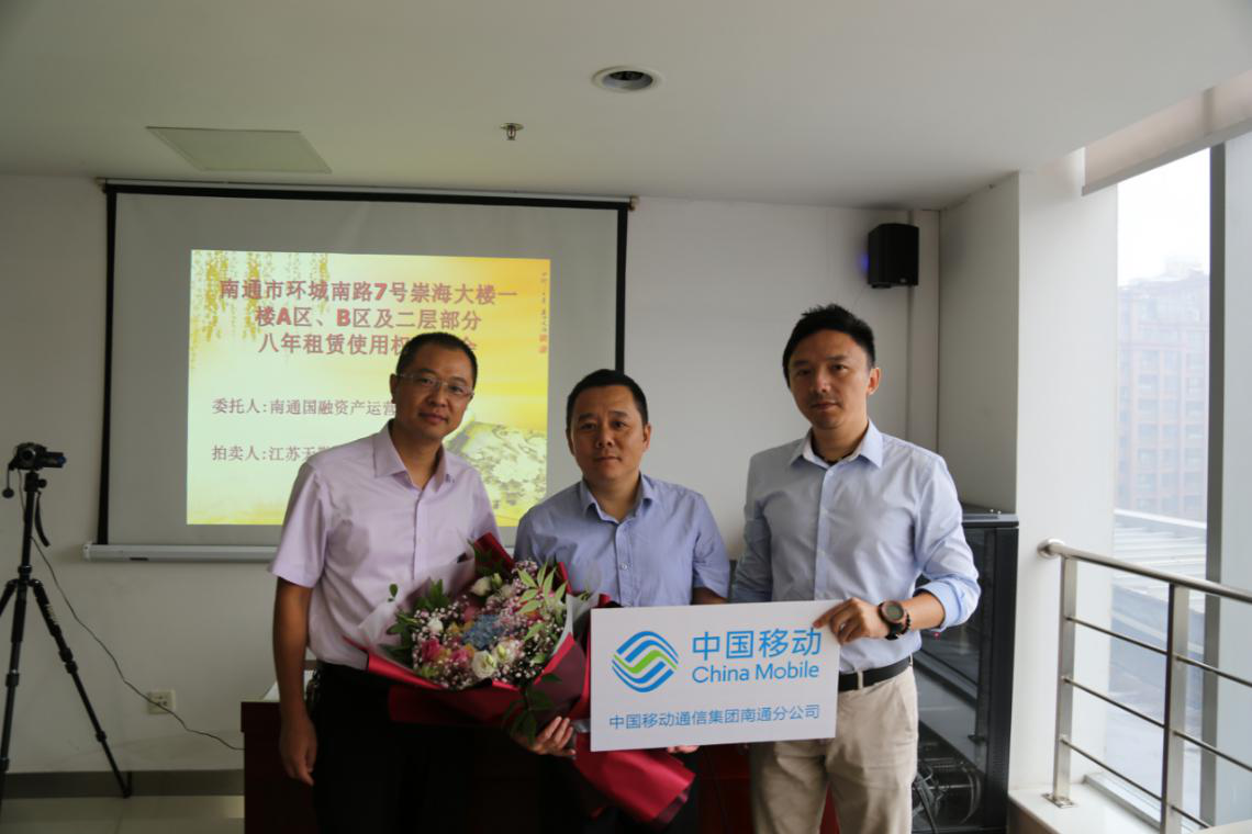 在宣讀了房屋租賃使用權拍賣的特別規定等文件并確認各競租人無異議后,現場監拍人遞交了本場拍賣會的底價函。經拍租,中國移動通信集團江蘇有限公司南通分公司代理人、張家港保稅區佑福珠寶貿易有限公司代理人分別拍中崇海大樓A區八年租賃使用權、B區八年租賃使用權,并簽署了成交確認書,成交年租金合計達620萬元,八年租金總額達4960萬元。公司領導代表公司向房屋競租人遞送了鮮花表達祝賀并合影留念。統一規劃,統一布局,統一招租,統一競租,國融公司充分挖掘崇海大樓優越的商業地段和濃厚的商業氛圍優勢,轉化為優良、持久、高效的經營收益,實現了該處資產科學升值。公司將以崇海大樓成功招租的經驗為借鑒,繼續做好所管理國有資產的升級改造,切實履行好國有資產保值增值的職責,推動企業的高質量發展。