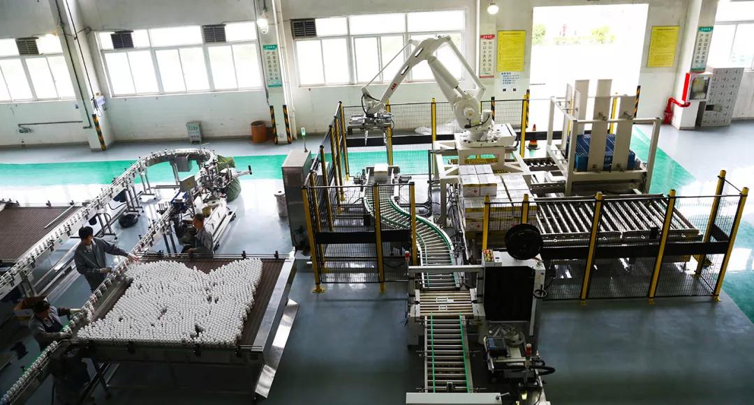 現今,農藥制劑生產面臨品種多、交貨期緊等諸多問題。江山股份針對制劑生產的實際情況,提出了制劑包裝、倉儲智能化的轉型升級思路。 江山殺蟲劑乳油智能包裝線實現了從理瓶、灌裝、檢重、封口、紅外檢測、套膜、立瓶、裝箱、碼垛等全流程自動化。整線生產只需4-6人。