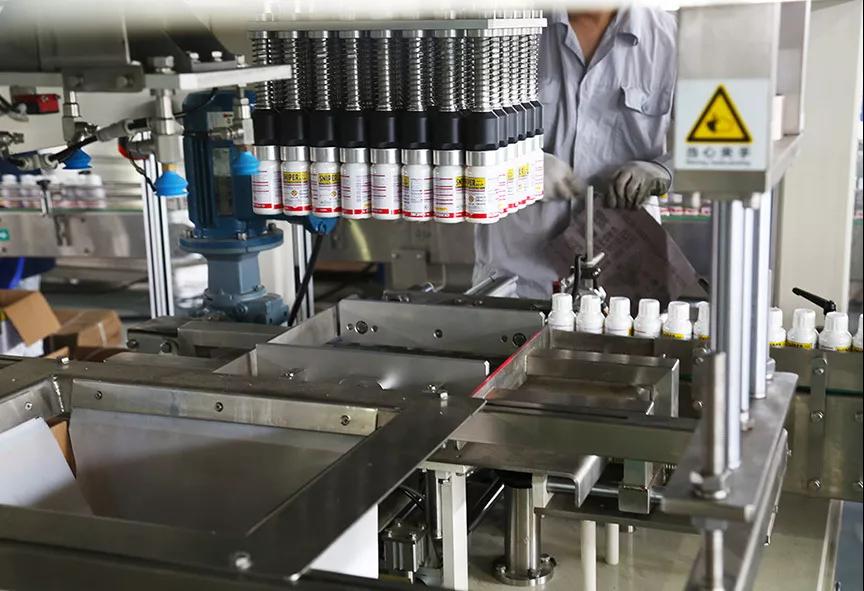主傳動部電機輸出處有離合機構,確保設備不受到損傷。旋蓋機和灌裝機采用同一驅動組成,保證灌裝旋蓋速度協調一致。配備的旋蓋效果檢測器可以及時剔除無鋁箔蓋、歪蓋等旋蓋不合格品。 該設備運轉部位使用的伺服電機采用國外全自動高精度閉環式控制原理機構傳動,扭力大。由PLC 執行動作控制,觸摸屏采納模擬量調整,較一般廠家使用的同步帶傳動具有更高的貼標速度和高精度。 利用標簽緩沖技術,實現了滾標貼超過170瓶/分鐘的速度,較高速旋轉貼標機價格下降40%,占地空間更小,調整更便捷。 江山股份的制劑包裝經歷了從手工包裝(一條線20人,產能6000瓶/小時),到半自動化(一條線12人,產能10000瓶/小時),再到如今的全自動化(一條線4-6人,產能10000+瓶/小時)。整條生產現聯鎖控制,輸送控制系統運行通暢,提高了生產可控性,包裝生產品質好、耗損低。整線智能生產線擁有檢查剔除系統,及時自動地實行數據采集,實時對產線運行狀態進行監控分析。