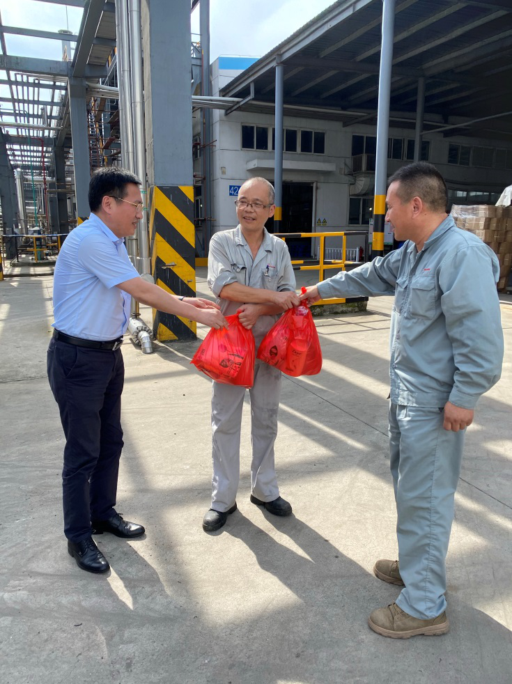 近日,連日高溫,驕陽似火。8月 6日下午,南通國泰創業投資有限公司黨總支書記、總經理沈利帶領綜合管理部、資產管理部的相關同志到江山農化、興盛木業等公司,看望、慰問酷暑中仍堅守奮戰在生產一線的公司職工,讓他們在炎炎夏日里感受到組織的關懷與溫暖。