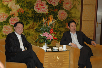 3月11日,市委常委、常務副市長藍紹敏、副市長徐輝在有斐飯店會見到訪的中國中化集團副總裁、中化國際新任董事長潘正義一行。 藍市長對潘總裁一行來通表示歡迎。他認為江山股份與中化國際的合作具有積極意義,中化國際在幫助企業應對國際金融危機中給予了授信融資等方面的有力支持,企業戰勝很多困難,市場看好。藍市長就江山股份的現狀及今后發展與來賓交換了意見,希望憑借中化國際強大的行業優勢和良好的產業基礎,與產控集團緊密合作,力爭早日實現江山股份百億元規模發展目標。 市經貿委主任楊揚、國資委主任李桂順、中化國際副總經理覃衡德、李大軍和集團董事長陳照東、總經理陳金明等參加會見。