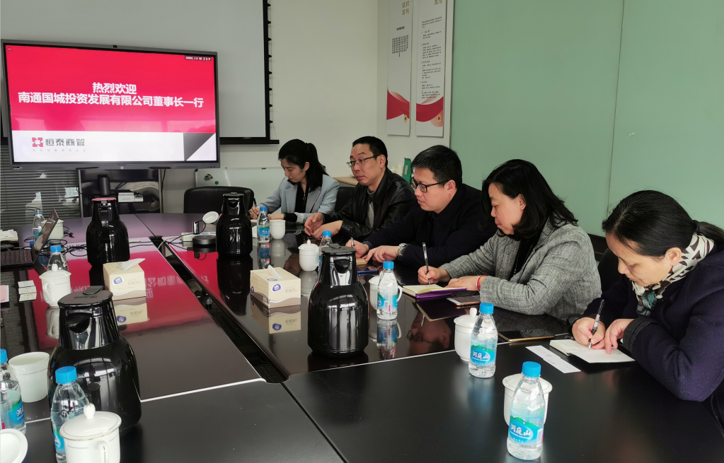 4月8日,國城投資黨支部書記、董事長謝俊一行走訪了蘇州工業園區恒泰商業管理有限公司。恒泰商管公司總經理吳志唐等介紹了蘇州恒泰集團及商管公司概況,并對園區商業項目開展情況做了簡要講解。隨后,雙方又一同探討了南通項目的規劃以及以公共交通為到導向的TOD項目發展。