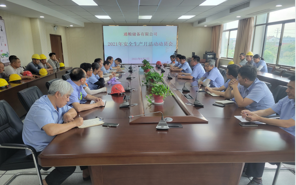 為全面貫徹習近平總書記關于安全生產(chǎn)的重要論述和黨中央、國務院關于安全生產(chǎn)重大決策部署,按照《關于產(chǎn)控集團組織開展2021年“安全生產(chǎn)月”活動的通知》文件要求,6月7日下午,南通通糧糧食儲備有限公司緊扣“落實安全責任,推動安全發(fā)展”這一主題,召開“安全生產(chǎn)月”活動動員會,旨在進一步樹牢安全發(fā)展理念,強化全員安全責任,推動公司安全生產(chǎn)工作上一個新臺階。全體在崗職工和外包工人參加此次動員會。