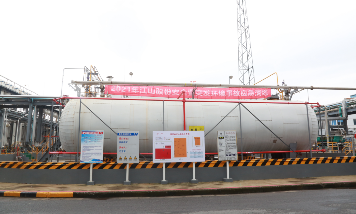 上午10:30演練開始,現場模擬液氨槽本體儲料罐泄露事故應急演練。公司總經理劉為東擔任演練總指揮,公司副總經理、阻燃劑事業部總經理孟長春、公司安全總監兼安全監督部總經理周冬冬、公司消防隊、醫療救護隊、應急處置技術組等參加演練。 各組人員分工明確,科學處置,演練小組反應快速,處置果斷,經過現場確認、警戒疏散、水幕噴射、夾具堵漏等一系列應急處置措施,15分鐘就完成了有效的應急處置。