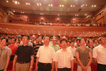 五年新跨越 歌聲獻給黨 ----集團隆重舉行“七一”總結表彰大會暨文藝匯演活動 6月30日下午,產控集團召開“七一”紀念表彰大會暨大型文藝匯演活動。集團所屬20家黨組織、近千名黨員參加活動,回顧黨的光輝歷程和“十一五”發展成果,以昂揚的歌聲表達對黨的熱愛。市國資委李桂順主任、市委組織部宋建宏處長應邀出席,集團黨委副書記徐憲華主持大會。 大會表彰了2010年度“五好”黨組織、優秀黨員和優秀黨務工作者,以及在“創先爭優,實現跨越發展”暨慶祝建黨90周年系列活動中涌現的先進集體和個人。全系統20多名新黨員面向黨旗進行入黨宣誓,與會黨員重溫了誓詞。 集團黨委書記、董事長陳照東代表黨委作報告。他指出,全市經濟社會發展已進入“兩個率先”的關鍵時期,產業現代化是市委確定的三大目標之一,產控集團要成為產業現代化的生力軍。他要求,圍繞“十二五”期末實現總資產、銷售額“雙兩百億”的目標,各級黨組織要引領科學發展,統籌謀劃發展思路、發展戰略,重點加 快洋口港新城、觀音山新城和生物科技園的新興產業建設和傳統產業的優化升級;全體黨員要爭做先鋒模范,以企為家,立足崗位,創新、敬業、奉獻;通過建設學習型黨組織,加強人才引進和培養,積極推進民主管理,加強反腐倡廉建設,以創先爭優為主題創新黨建工作內涵,圍繞深化改革、加快發展、維護穩定的大局提供 堅強的政治和組織保障,為集團實現新的跨越保駕護航。 大會在雄壯的《國際歌》歌聲中結束。會后,以“黨旗輝映產控情”為主題的大型文藝匯演隆重上演,產控系統十家單位選送了精彩的歌舞、小品、詩朗誦等節目,贏得陣陣喝彩,向社會展現了產控人“齊心向黨、追求跨越”的嶄新風貌。