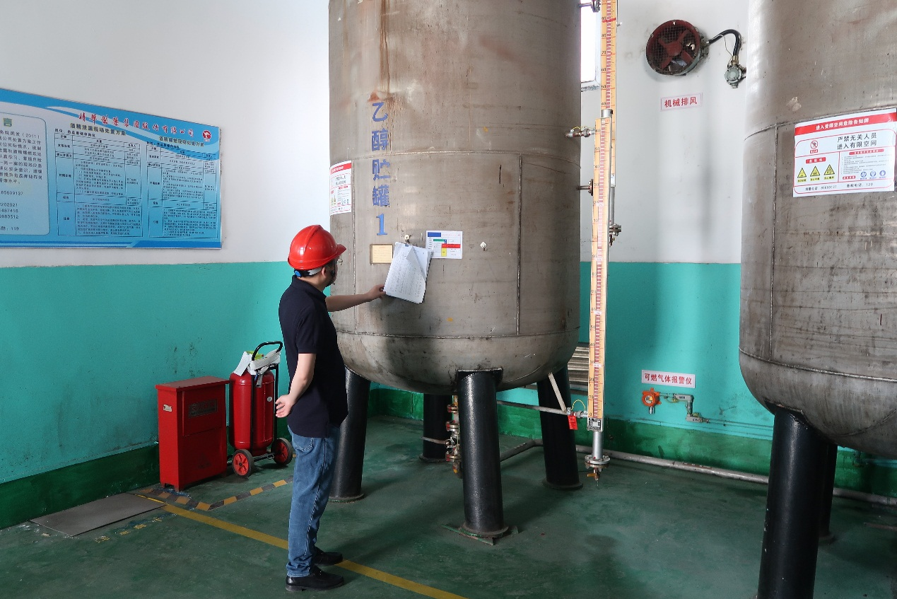檢查組一行先行進入危險品倉庫進行檢查,成劍詳細了解了乙醇的儲存量、乙醇出入庫的管理要點、乙醇庫區的日常檢查重點等情況,成劍要求:企業要增強安全風險意識,樹立底線思維;要按照安全大檢查的要求落實好各項工作;要持續開展安全專項整治,開展回頭看,排查生產中可能存在的問題和薄弱環節,嚴格管控安全風險,做好節假日前后安全生產工作。 檢查組在進入倉庫、消防控制室現場檢查過程中,重點查看了疏散通道、安全出口是否暢通,應急照明、疏散指示標志是否保持完好有效,滅火器壓力是否正常,并現場抽查職工消防應急預案掌握情況。成劍強調:企業要進一步落實好消防安全責任制,要按要求開展防火巡查、檢查,對查找出的隱患要及時閉環處理。