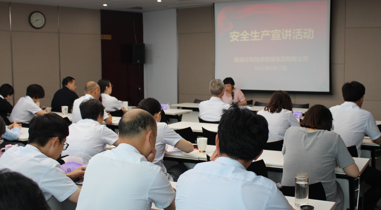 今年6月是全國第21個“安全生產月”,眾和擔保嚴格落實“安全生產月”工作要求,結合公司實際,細化完善活動方案,圍繞“遵守安全生產法,當好第一責任人”活動主題,扎實開展系列宣貫活動,推動安全生產各項工作走深走實。 6月27日下午,眾和擔保召開“安全生產月”宣講活動,公司全體員工及子公司領導班子成員共計40余人參加活動。會上,黨支部書記李瑾傳達了產控集團“安全生產月”專題工作會議精神,提出“提高思想認識、落實制度規定、切實擔起責任、實現兩個確保”的工作要求。