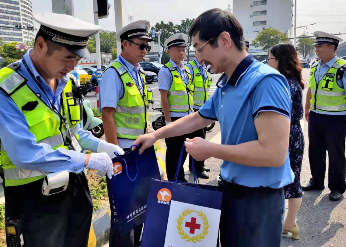 8月12日上午,精華制藥集團和南通市紅十字會相關負責同志來到南通市公安局交警支隊四大隊及四大隊所轄兩個路段,慰問高溫下堅守崗位的一線交警。精華制藥集團監事會主席薛紅衛和南通市紅十字會黨組成員朱建新將季德勝健膚皂、潔面乳及防疫藥茶等防暑防疫物資送到路面執勤的交警手中,向他們表達了由衷的敬意。