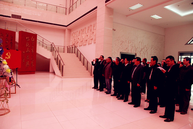 黨員代表向革命先烈群體浮雕敬獻花籃后,全體黨員面對黨旗重溫了入黨誓詞。大家紛紛表示,要堅持發揚革命傳統,繼承、弘揚好革命傳統精神,進一步加強黨性修養,進一步密切與人民群眾的血肉聯系,進一步改進工作作風。