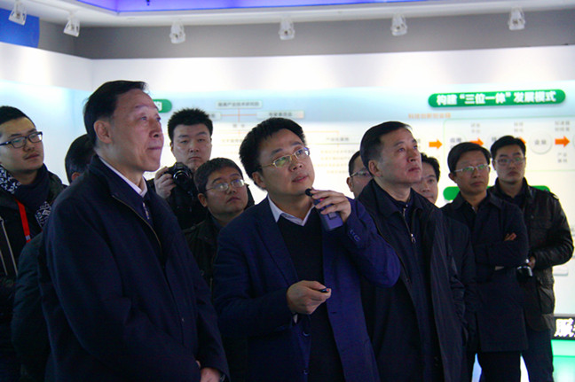羅志軍一行在南通產業技術研究院展示中心認真聽取了產研院總經理沈風雷關于研究院在構建研究機構、科技園區、產業基地三位一體運作模式等方面的情況介紹,詳細了解了產研院在智慧建筑、智能裝備、新材料、互聯網經濟等領域的最新科研成果。在希盟智能健康監護系統模型展示前,羅志軍與企業負責人認真交流,仔細詢問最新研究成果和產業化進展。在觀看了眾誠生物納米修復材料現場演示后,羅志軍高興地說,這樣的科技創新不僅能夠有效解決企業發展中遇到的技術難題,而且在環境保護方面取得了關鍵突破。